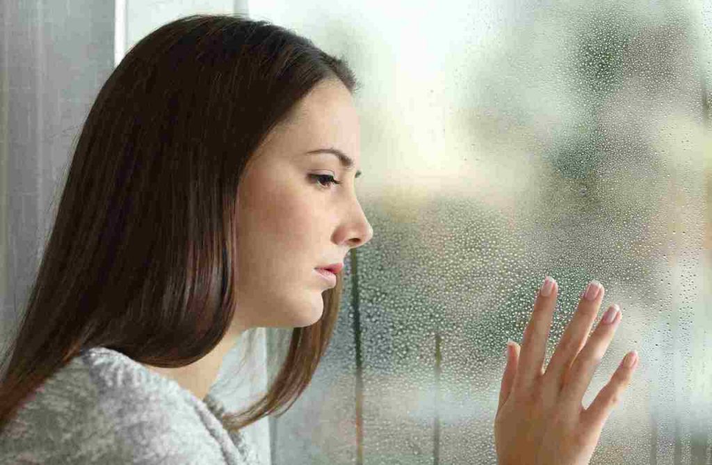 Donna triste guarda fuori dalla finestra_Donnaclick