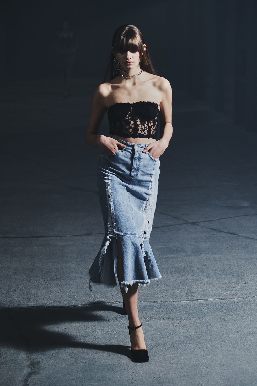 Gli stilisti aprono il volume tagliando il tessuto, così da trasformare le perfette pieghe in audaci spacchi.