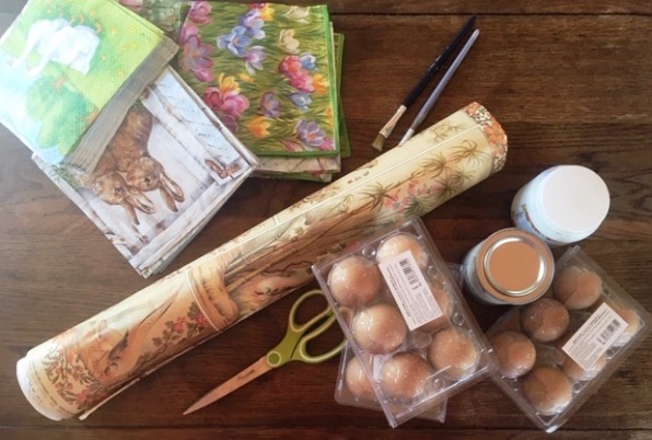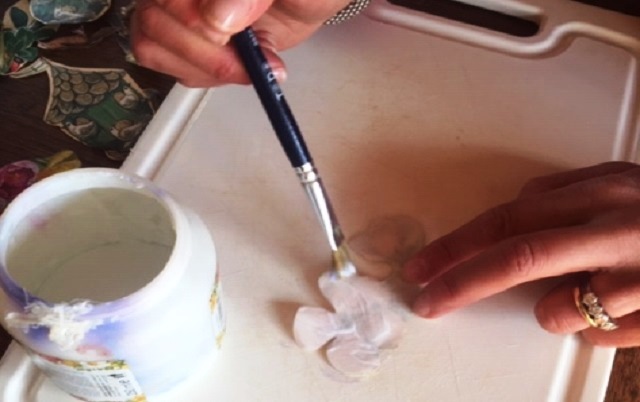 Stendete la colla con il pennello sul retro di una decorazione ritagliata dai tovaglioli o dalla carta.