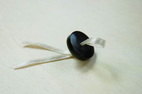 Far passare il nastrino attraverso i buchi del bottone.