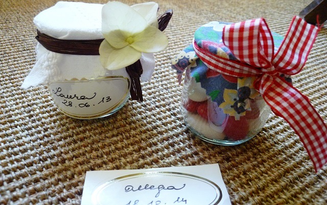 Stampale con la stampante e fotocopiale e poi ritagliale con le forbici a zig zag. Le etichette andranno incollate sul vasetto. Se non vorrai faticare troppo, potrai incollare semplici etichette bianche con scritto la data della ricorrenza e il nome del festeggiato.