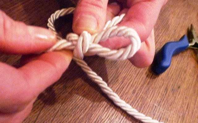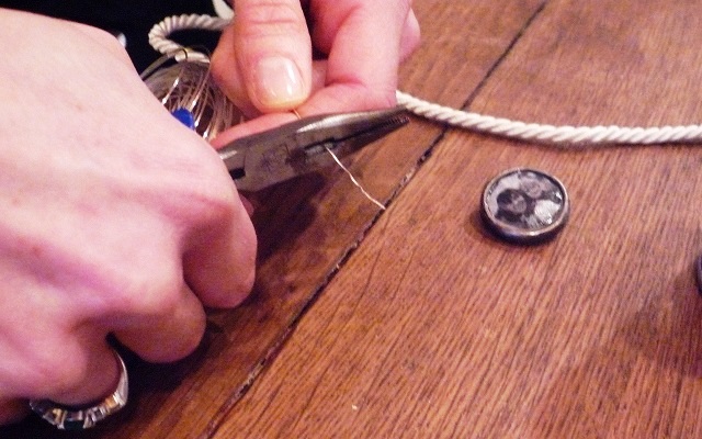 Rifinisci bene il cordoncino con le forbici e fissa l’occhiello con il filo metallico in modo che non si sfili facilmente.
