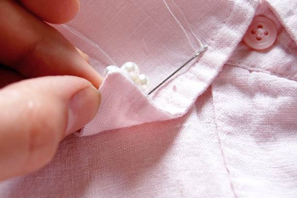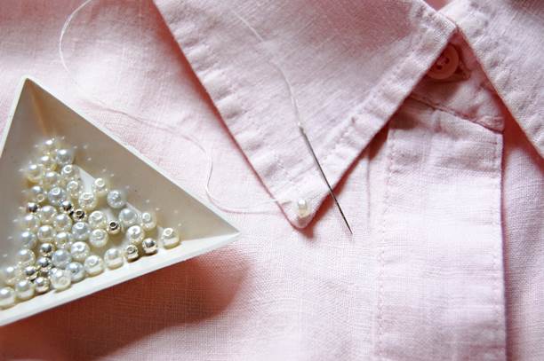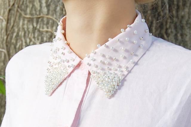 Colletto di cacmicia decorato con le perle terminato.