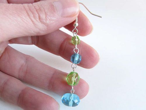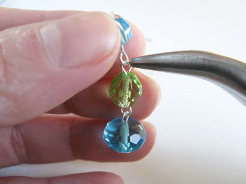 Allargate l’asola della monachella ad amo e inseritevi il primo elemento della catena, richiudete delicatamente. I vostri orecchini pendenti, allegri e colorati, sono pronti per essere indossati!