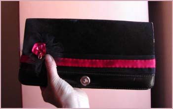 Una pochette per la serata di San Valentino con fiocco fai da te in nastro e tulle.