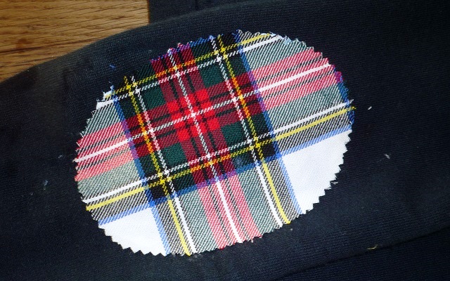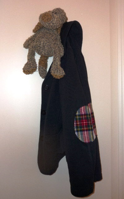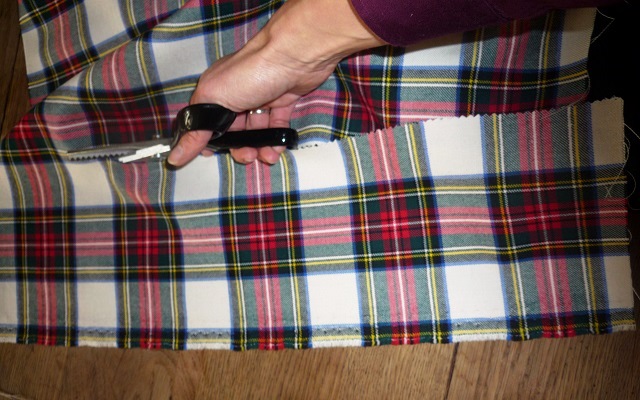 OCCORRENTE: Un ritaglio di 100 cm. per 50 cm. di tessuto scozzese, una giacca da bimbo/a, forbici da tessuto e colla da tessuto