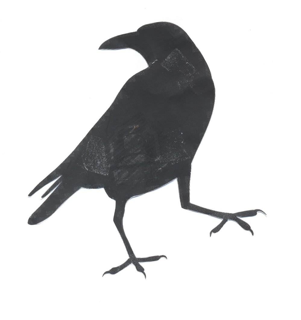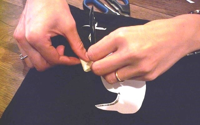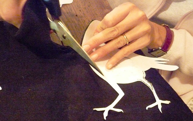 Ritaglia la sagoma del corvo mantenendo in aderenza i due strati del tessuto (puoi aiutarti con degli spilli).