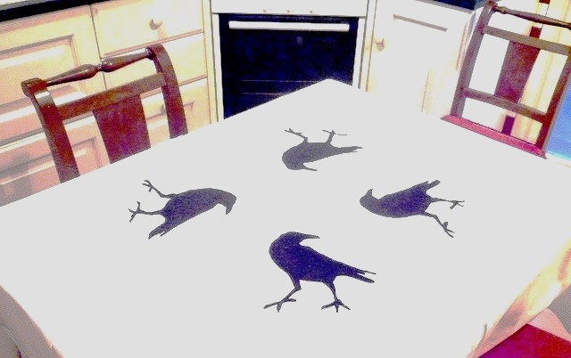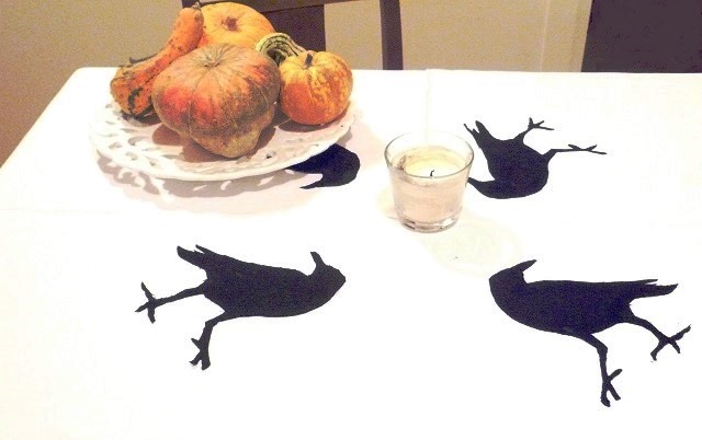 Incolla con attenzione i corvi sulla tovaglia che hai scelto per festeggiare Halloween