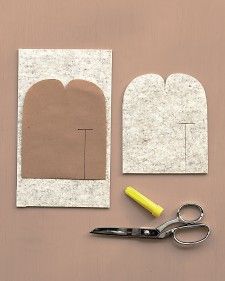 Disegnare e tagliare il feltro con carta modello nella forma esposta, disegnando il taglio a T per il segno di entrata del piede