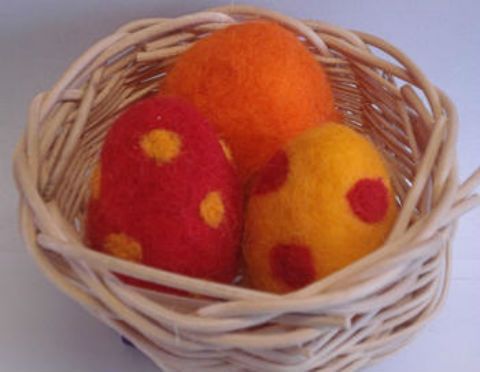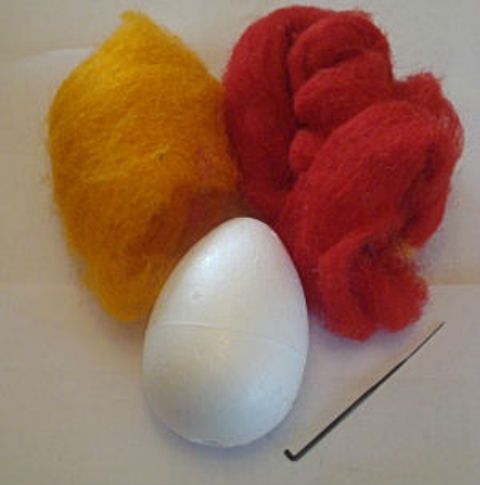 Occorrente: uova in polistirolo, lana cardata, aghi per infeltrire