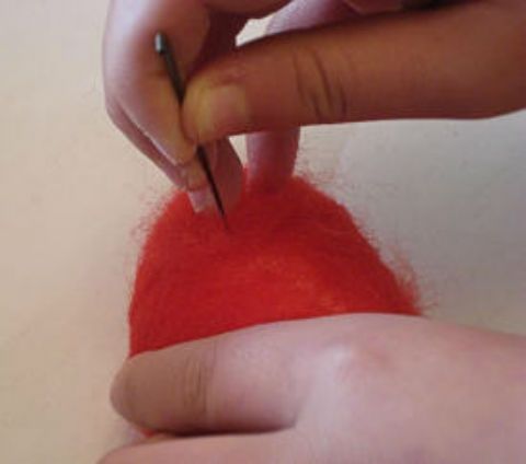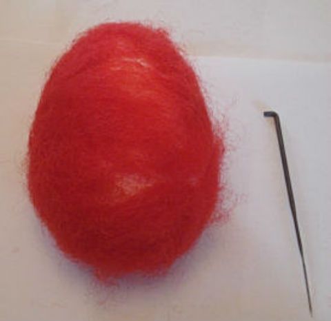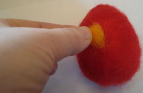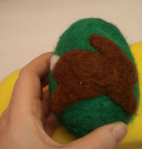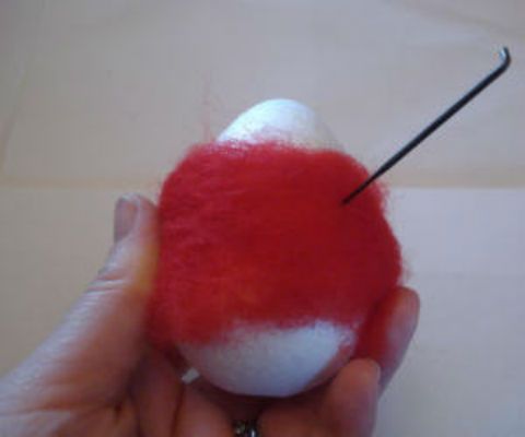 Ricopri con la lana cardata l’uovo di polistirolo e lavora picchiettando con l’ago