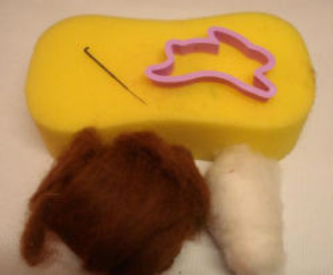 Per il leprotto vi serve: lana cardata, aghi per infeltrire, base in gommapiuma, formina per biscotti