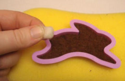 Posiziona la sagoma sulla base di gommapiuma e riempila di lana cardata