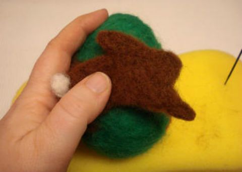 Applica un batuffolo di lana bianca come coda, sempre utilizzando l’ago per infeltrire