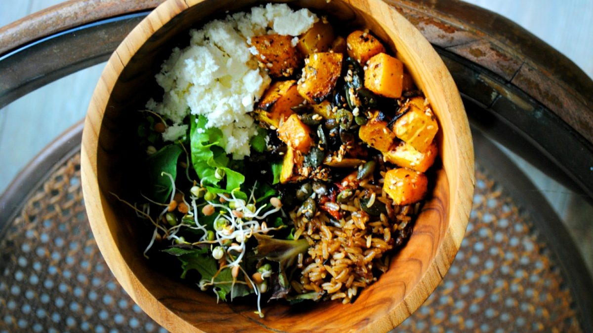 7. Quando tutto sarà ben cotto impiattate tenendo gli ingredienti separati e finite di condire le verdure con pepe nero fresco, olio d’oliva e un pizzico di curry.