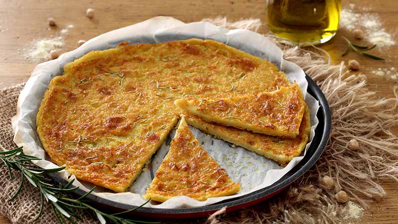 La farinata di ceci è uno dei piatti tipici e tradizionali della cucina ligure. La cottura della farinata di ceci avviene nel forno a legna, su una teglia dai bordi bassi di forma rotonda o rettangolare. Se volete prepararla in casa, mescolate con una frusta 100 gr di farina di ceci e 300 ml d’acqua, con 4 cucchiai di olio extravergine d’oliva ed un pizzico di sale e pepe. Lasciate riposare il tutto per almeno un’ora e versatelo poi sul fondo di una teglia. Infornate la farinata a 180° C per circa 45 minuti, fino a doratura. Potete aggiungere al composto erbe aromatiche come origano o rosmarino e servire con una spolverata di pepe.