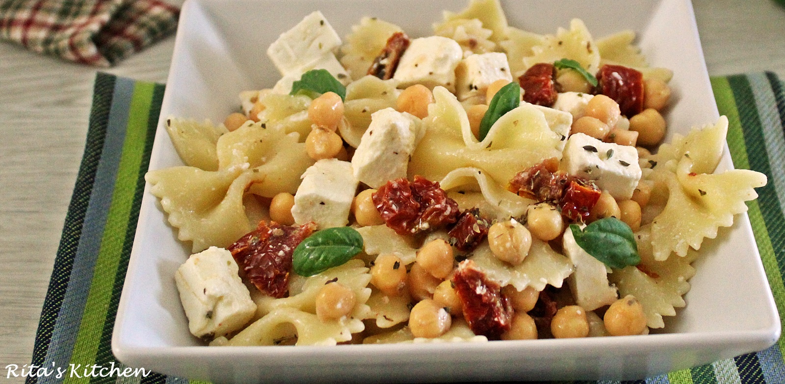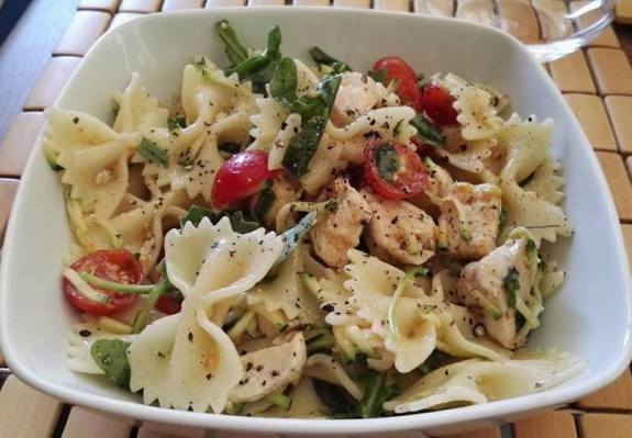 Farfalle tricolore con zucchine, feta e pomodorini