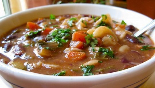 Crosta di Parmigiano nel minestrone di verdure