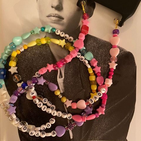 Così sono nate le prime collane e cavigliere colorate, poi cordini e tracolle per i cellulari, sempre coloratissimi, simili tra loro, ma personali, con i nomi dei futuri proprietari per rendere unico l’oggetto creato.