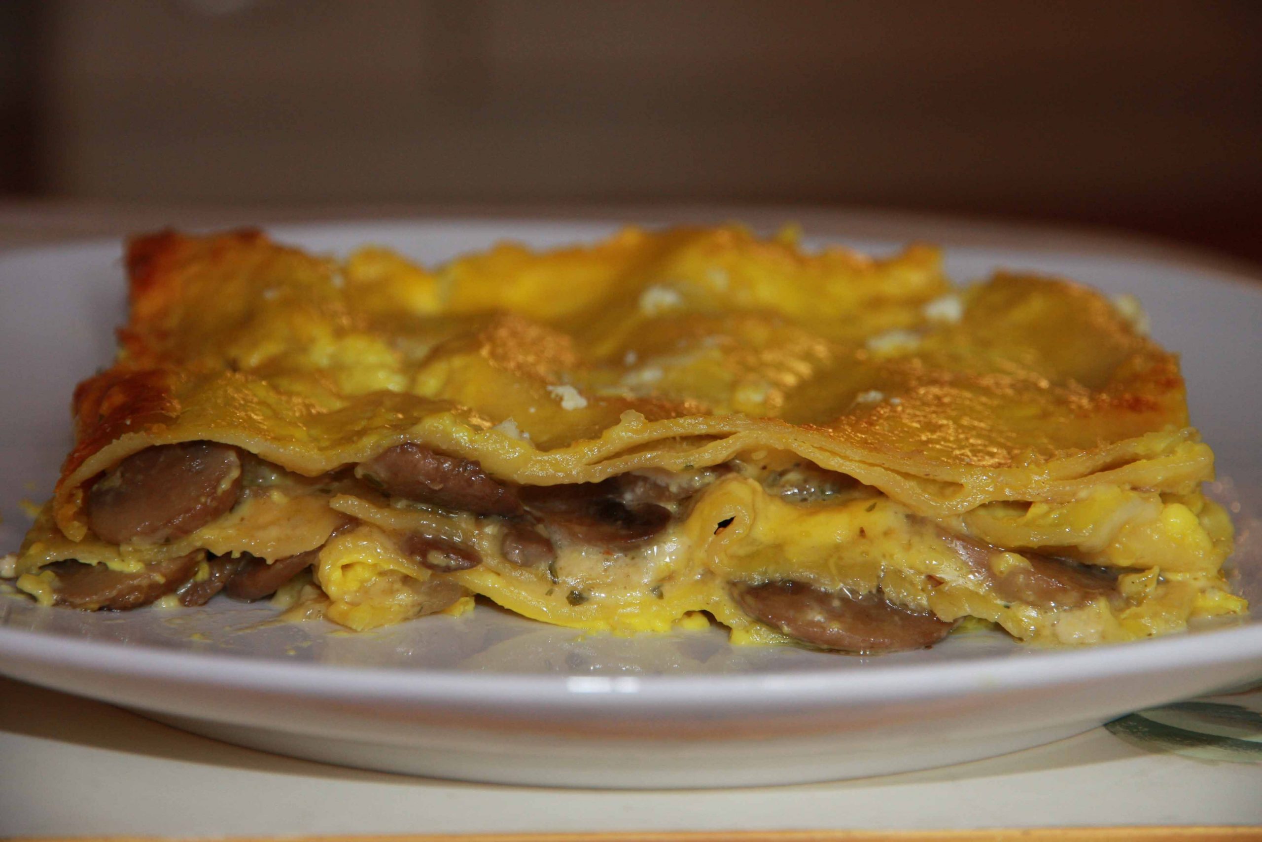 - L’ultimo strato deve essere di besciamella e scamorza: coprire in modo da ottenere la crosta finale