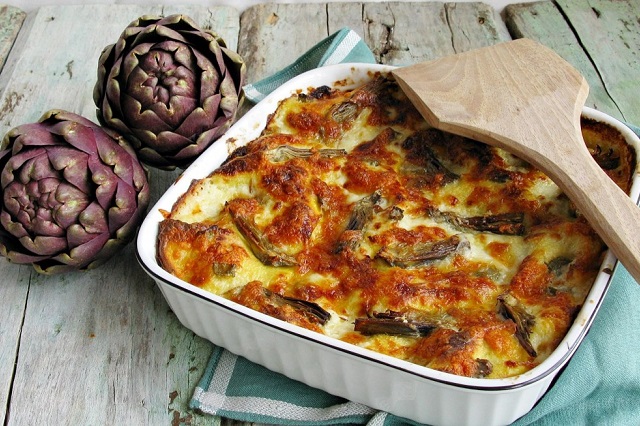 - Incorporare metà della besciamella nei carciofi e mescolare bene