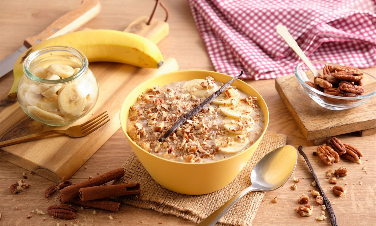 Porridge con yogurt, cannella e banana