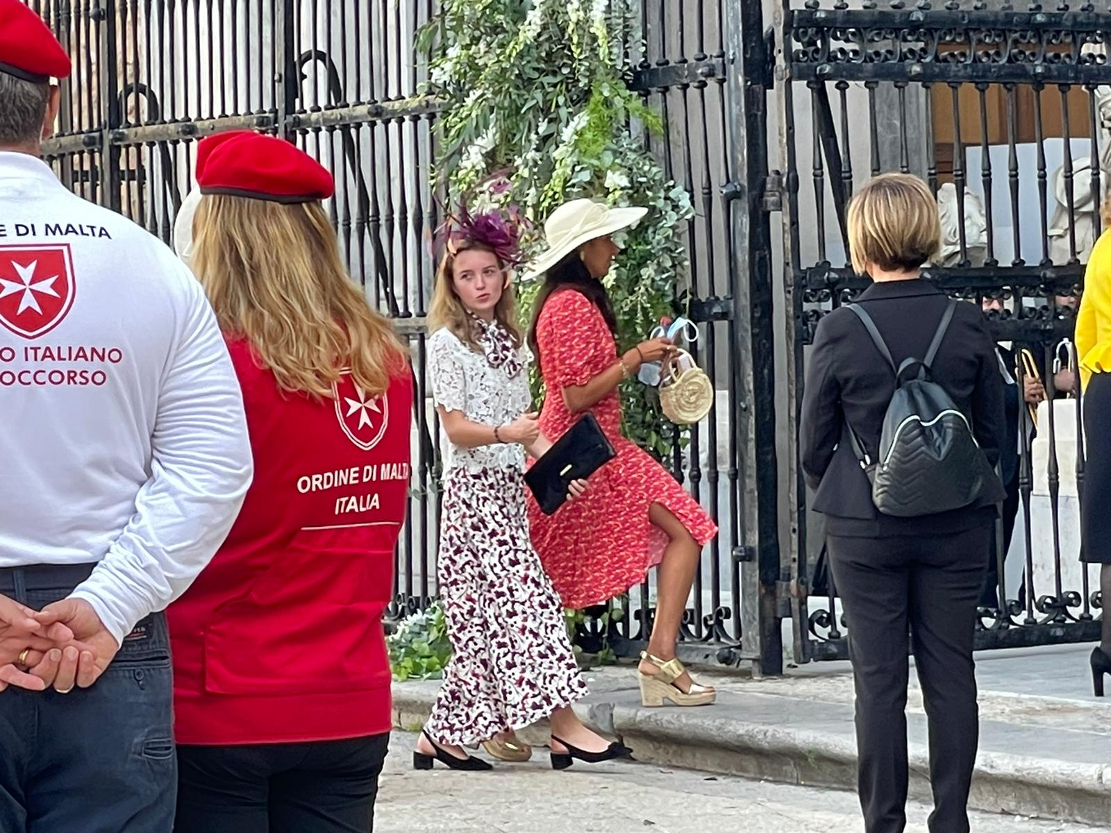 Lady Charlotte è salita su una carrozza trainata da quattro cavalli bianchi per una mini passeggiata fino in piazza. Il Duomo da ieri è stato chiuso al pubblico, riaprirà questa sera. A