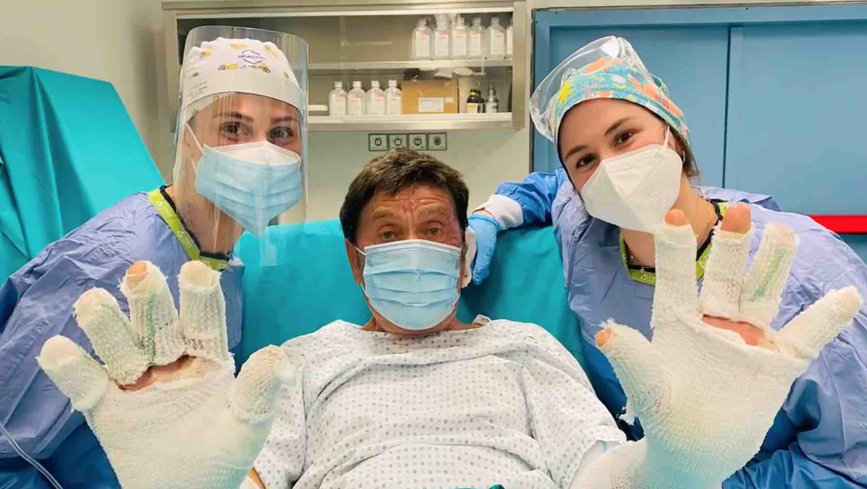 La foto di Gianni Morandi dopo l’intervento alla mano