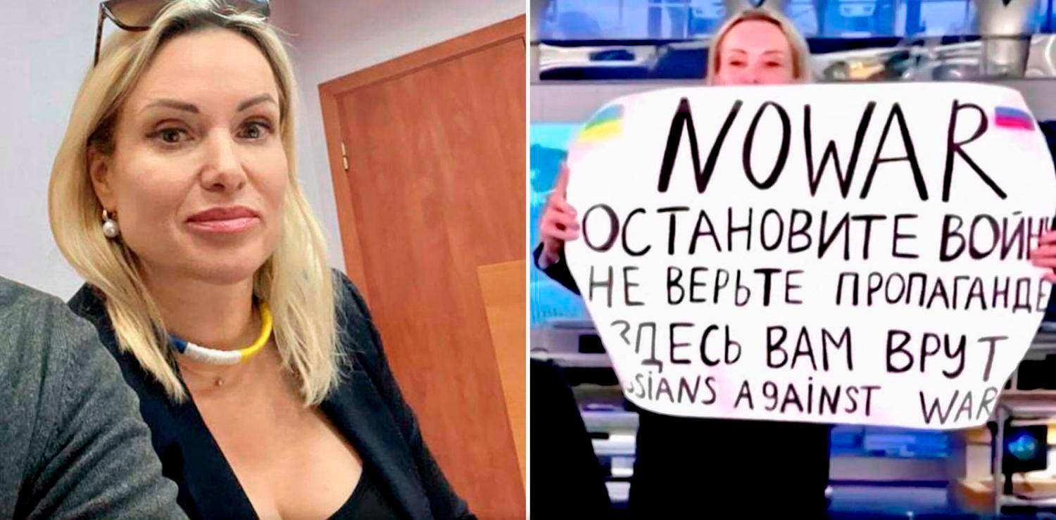 Marina Ovsjannikova è una giornalista russa di Channel 1 Russia che nel marzo 2022 ha interrotto con un cartello una trasmissione televisiva del canale statale per protestare contro l’invasione russa dell’Ucraina del 2022, suscitando un enorme scalpore internazionale. È stata arrestata, multata e quindi rilasciata.