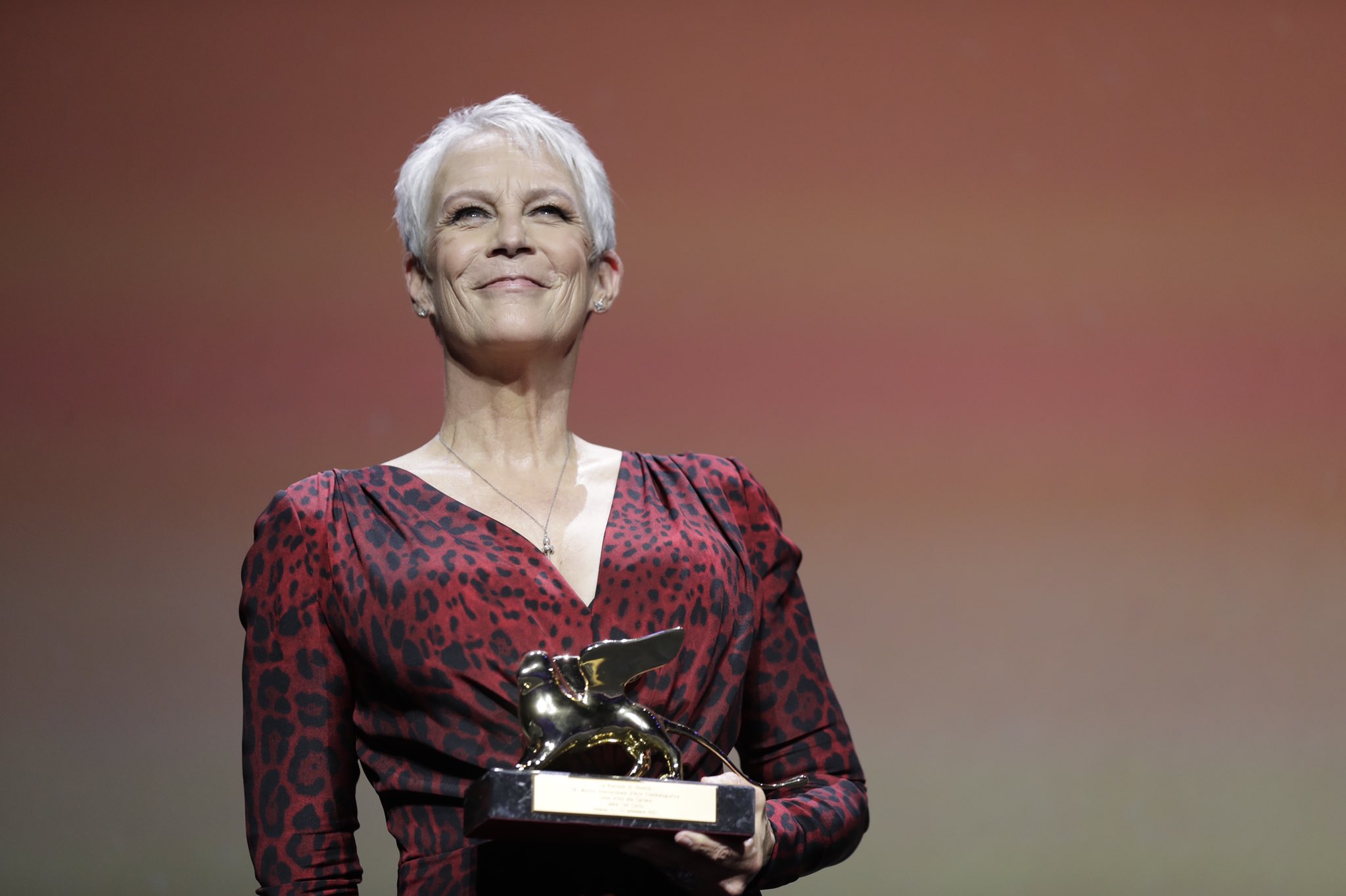 Figlia di due leggende, Tony Curtis e Janet Leigh, a Venezia si è mostrata  esattamente  come ci si attendeva:  anticonformista, brillante, fascino androgino e fisico da eterna pin-up.  L’intramontabile ricordo del suo celebre urlo nella doccia nel film «Psyco»  Jamie Lee Curtis le consente di  arrivare a piedi nudi, con le scarpe in mano “sfoggiando” con disinvoltura il suo taglio corto di un magnifico “sale e pepe” pronta a ricevere il Leone d’oro alla carriera  in attesa dell’uscita del  film «Halloween Kills» di David Gordon Green, che andrà nelle sale dal 21 ottobre.