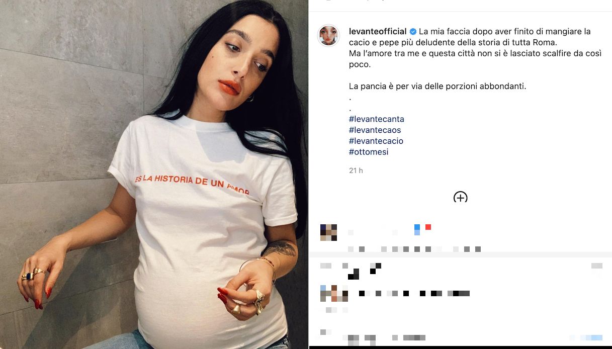 Una semplice t-shirt bianca, ormai ben tesa sul ventre che attira immediatamente l’attenzione: così Levante si è mostrata ai suoi fan, in una splendida foto condivisa su Instagram. È uno dei rari scatti che si è concessa da quando è incinta, preferendo vivere la gravidanza lontana dalle luci dei riflettori . “La mia faccia dopo aver finito di mangiare la cacio e pepe più deludente della storia di tutta Roma” – ha scritto come didascalia – “Ma l’amore tra me e questa città non si è lasciato scalfire da così poco. La pancia è per via delle porzioni abbondanti“.