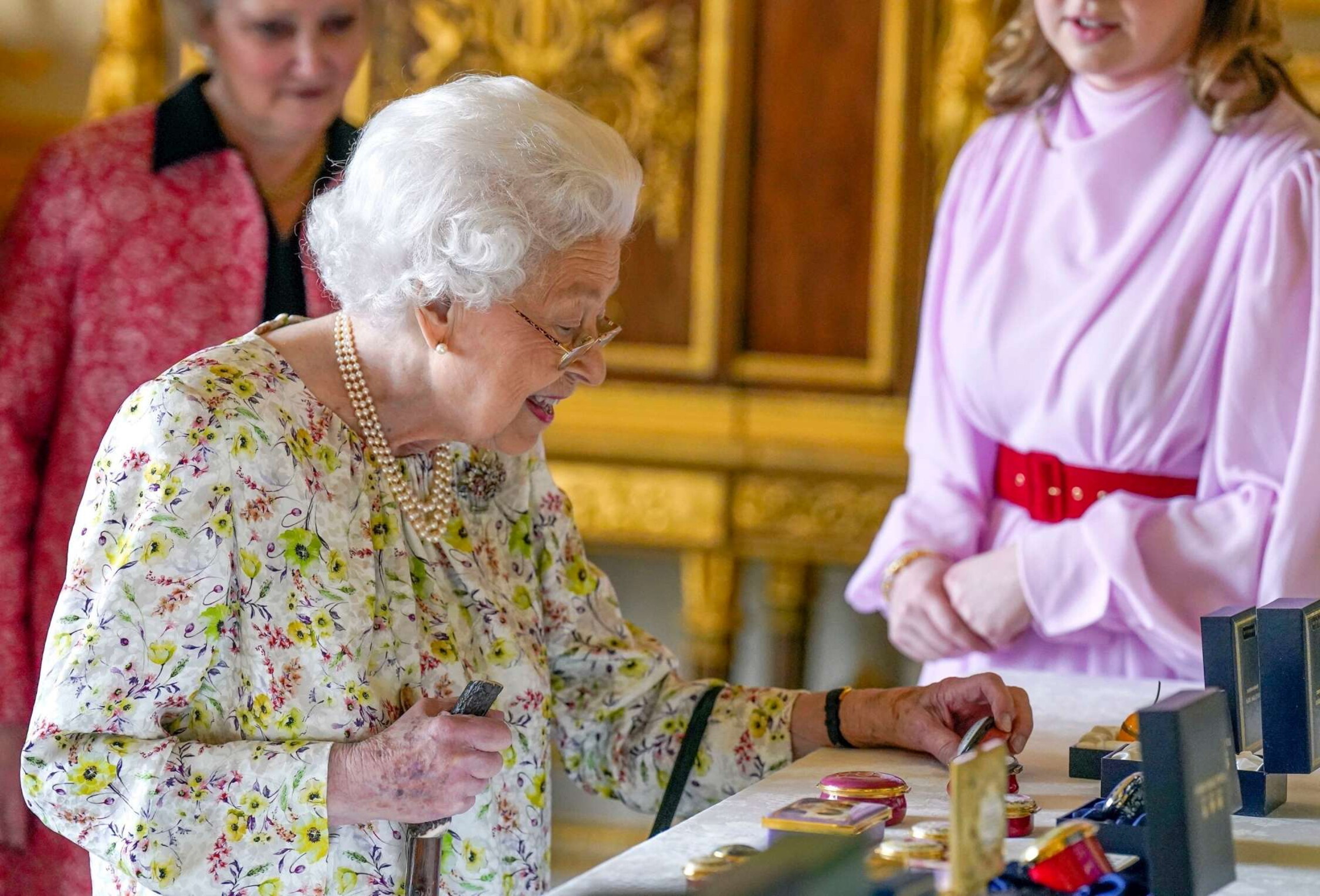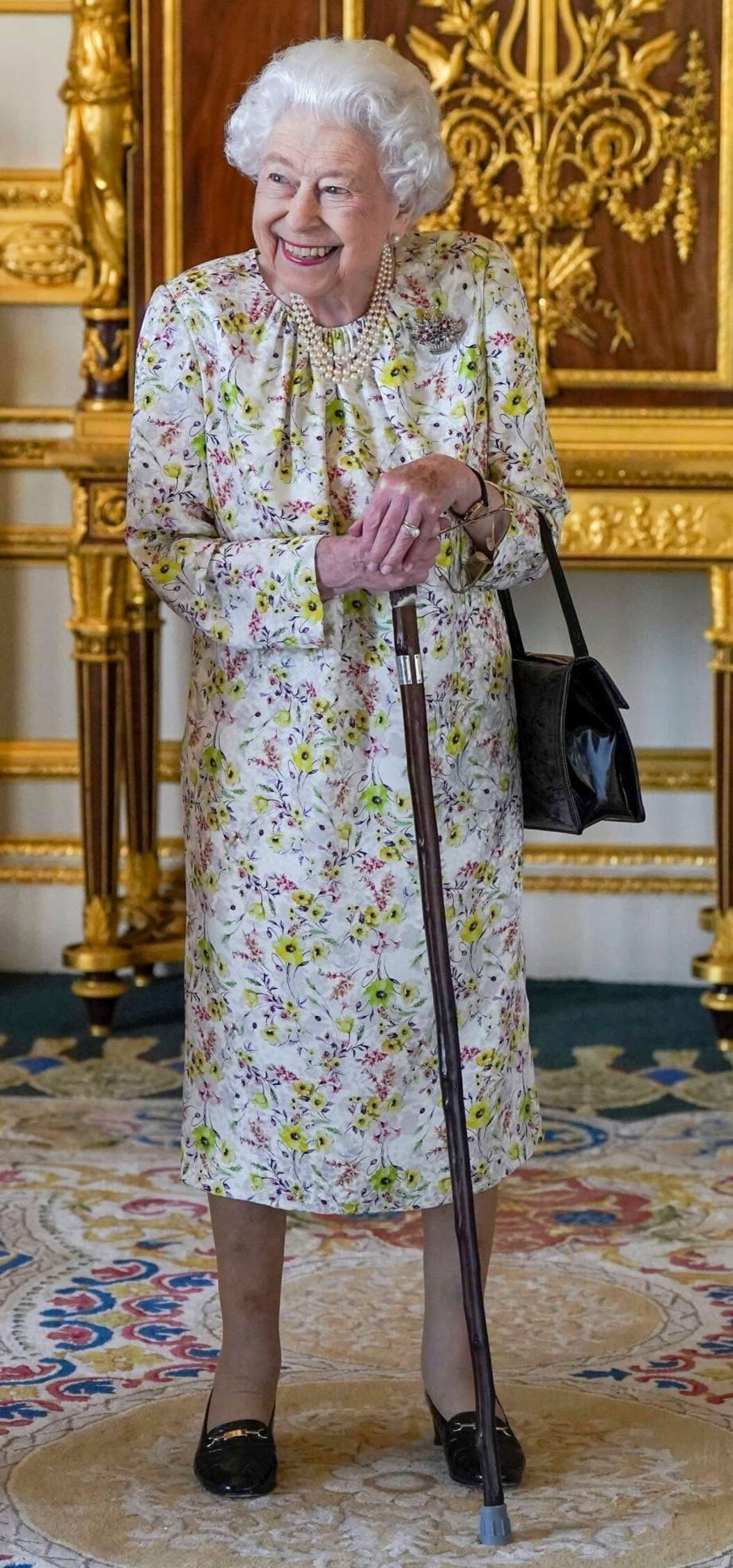 Dopo le voci che volevano la Regina Elisabetta costretta in carrozzina, la Sovrana si mostra al primo appuntamento in vista del 70esimo anniversario di regno con un bel bastone e un abitino floreale sulle tonalità del giallo canarino. Doveva visitare la mostra di artefatti della compagnia britannica Halcyon Days, ma gli oggetti d’arte se li è fatti portare direttamente al castello di Windsor.
