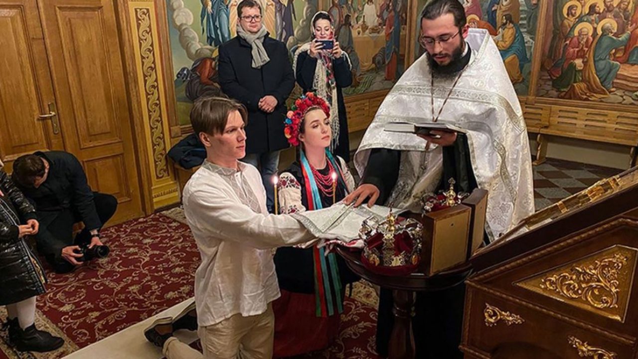 I due giovani sono convolati a nozze in chiesa nel primo giorno di guerra benedetti da un prete ortodosso durante cerimonia religiosa al monastero di San Michele di Kiev. Per loro purtroppo niente ricevimento né festeggiamenti come invece avevano programmato ma solo qualche foto fuori la chiesa con pochissimi pareti e amici stretti.