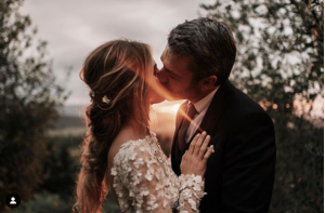 Un bacio al tramonto, un abito bianco e una captation che ci fa innamorare. Mr&Mrs Argentero. Prima foto di Luca...